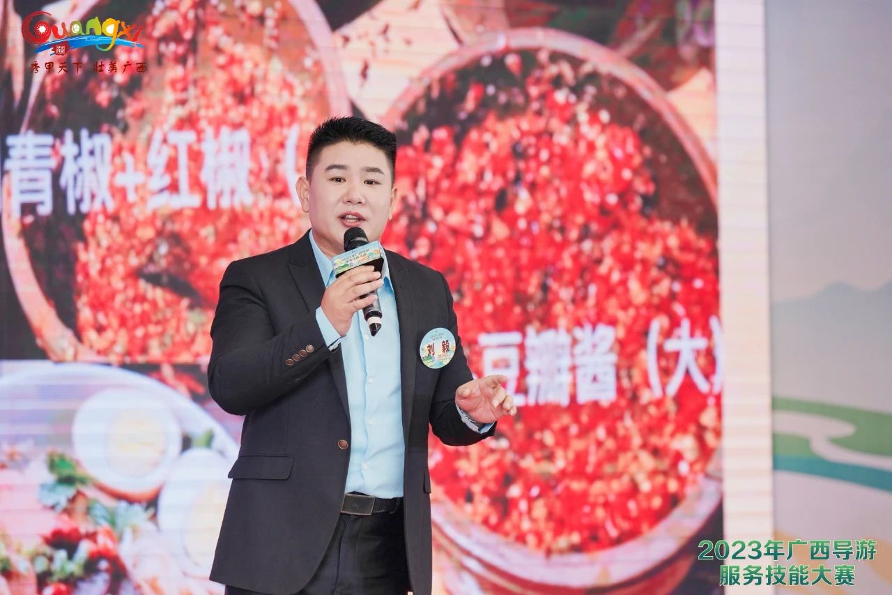 本次比赛全区共700多名导游、讲解员参与,经过层层选拔,最终50名优秀选手晋级大赛总决赛。刘毅作为桂林导游代表队选手参赛,这不是他第一次比赛,3年前,他便以优异的表现获得2020年桂林市导游技能大赛一等奖。虽有荣誉在身,但对于参加本次自治区级别的比赛刘毅仍毫不松懈。除了依靠平时带团累积的丰富经验外,在赛前一个月他毅然选择停工备赛,参加桂林市文旅局组织的专业化、系统化的培训进一步提升自己,以扎实的知识储备及充分的实战演练迎接比赛。