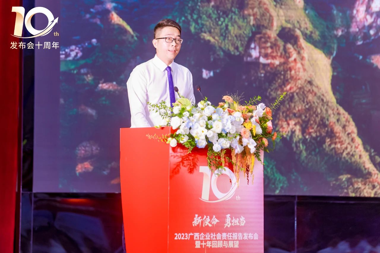9月26日,由广西壮族自治区工业和信息化厅、广西企业与企业家联合会主办的2023广西企业社会责任报告发布会暨十年回顾与展望活动在南宁举行,来自全区不同所有制的100家企业集中发布了企业社会责任报告,共同摸索如何将自身经营发展转化为社会贡献、如何在实现自身商业价值的同时承担社会责任,为推进全区企业更好地履行社会责任,促进经济和社会高质量发展贡献智慧。发布会上,福达集团作为4家典型发布企业之一,由集团党委副书记、总经理助理王锦明就福达集团2022年度社会责任实践取得的主要成果做专题发布,并接受记者采访。