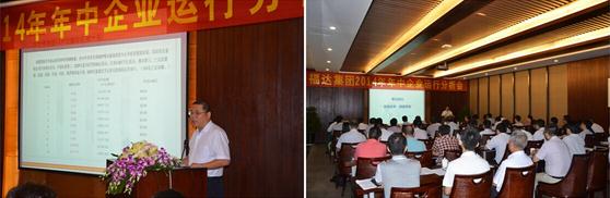 福达集团2014年年中企业运行分析会于7月25-26日在桂林万鹂金象酒店召开。会议由樊文堂总经理主持,集团董事长黎福超及公司中高层管理干部共65人参加了会议。黎福超董事长对本次会议给予充分肯定,认为会议准备充分,形式创新,大家的参与度很高,效果很好。希望各位领导把会议精神向广大职工传达,紧紧围绕“变革、精益、满意”的经营方针,大力实施“管理变革、精益制造”工程,落实好各项工作措施,努力完成下半年经营目标。