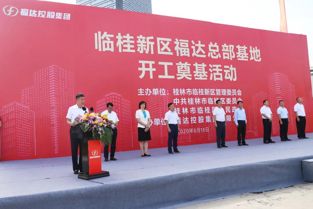 开工奠基活动上,桂林市委常委、常务副市长彭代元致辞表示,今天开工建设的福达总部基地项目,是一座集商务、办公、购物、酒店、总部经济等综合性功能为一体的综合大厦,也是目前桂林市规划建设中的第一高楼,标志着临桂新区的建设又迈上了一个新的台阶。项目建成后,将成为桂林城市的新地标、产业发展的新载体、城市开发的新亮点,对提升桂林城市价值,完善城市配套,促进产城互动、融合发展都将起到重要的促进作用。
