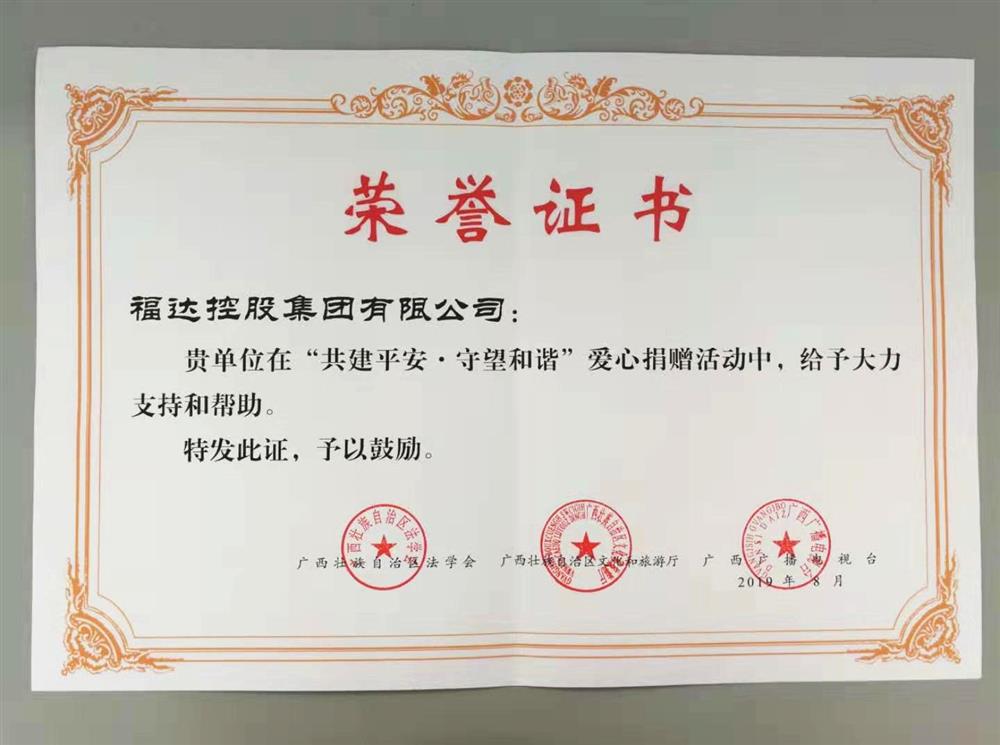 福达集团向广西社会和谐稳定发展基金会捐赠200万元